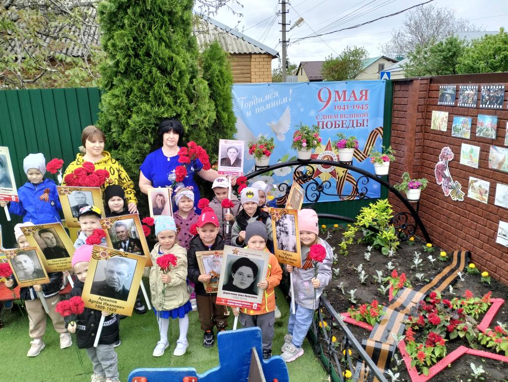Всероссийская патриотическая акция "Бессмертный полк " 06 мая 2025 года прошла в нашем детском саду. Воспитанники детского сада, совместно с родителями, заранее подготовили портреты своих родных - участников ВОВ, изготовили транспаранты. Педагоги и воспитанники с гордостью приняли участие с портретами своих героев в шествии во дворе детского сада, испытывали чувство благодарности и гордости за свою страну.